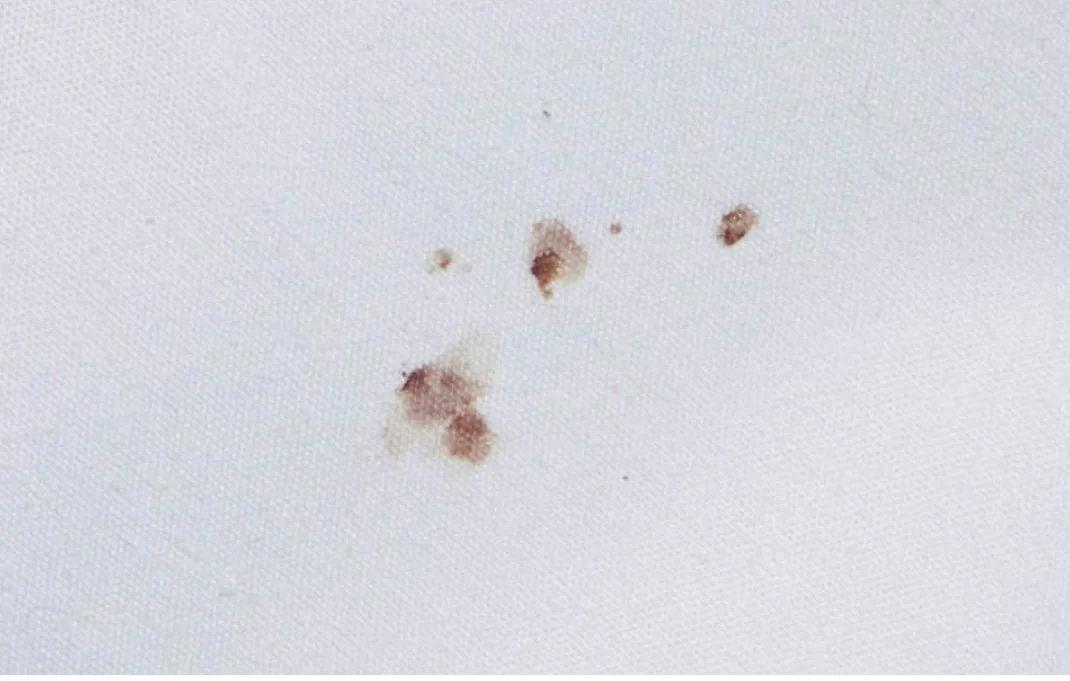 Besides looking for bed bugs themselves, there are several signs of their presence that can alert you to an infestation. Small red dots of blood on your sheets or blankets, brown or tan streaks of fecal matter, and discarded skins and egg casings are all signs of a bed bug infestation.