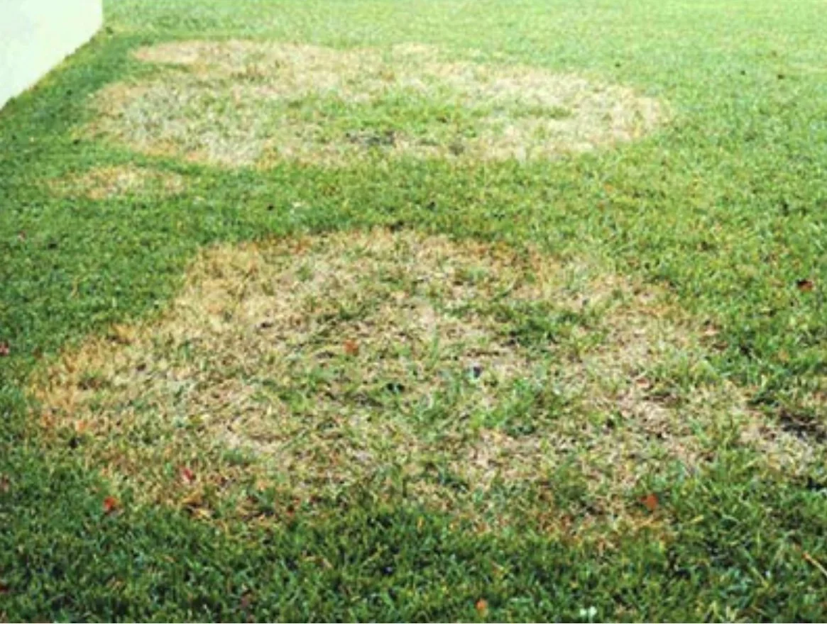 Grubs: Damage from grubs will begin with wilted grass blades, followed by brown patches and eventually dead grass.